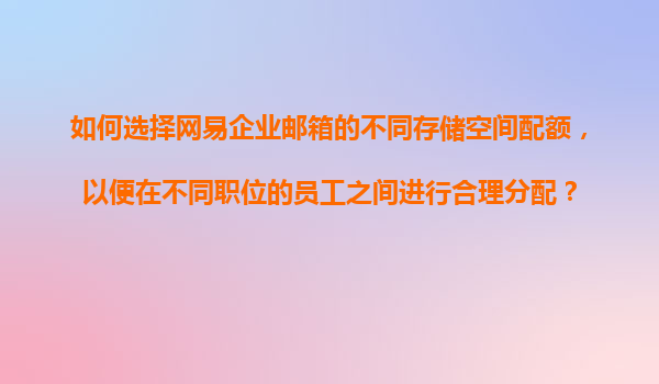 如何選擇網易企業(yè)郵箱的不同存儲空間配額,以便在不同職位的員工之間進行合理分配? 一、網易企業(yè)郵箱的核心優(yōu)勢 網易企業(yè)郵箱作為國內領先的企業(yè)通信解決方案,具備以下核心優(yōu)勢,為企業(yè)存儲空間管理...