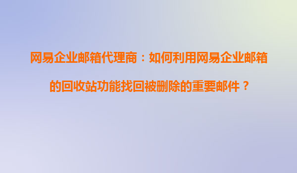 2025-11-03網(wǎng)易企業(yè)郵箱代理商指南:如何利用回收站功能找回被刪除的重要郵件 一、回收站功能的重要性 在日常工作中,誤刪郵件的情況時有發(fā)生,尤其是重要郵件一旦丟失可能影響業(yè)務進程。網(wǎng)易企業(yè)郵箱的回收站功...