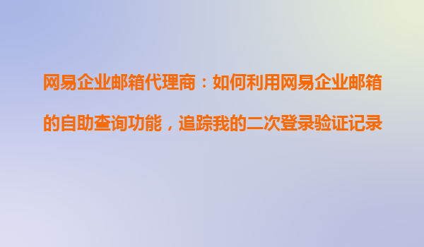 4008-020-360 網(wǎng)易企業(yè)郵箱代理商:如何利用網(wǎng)易企業(yè)郵箱的自助查詢功能,追蹤二次登錄驗(yàn)證記錄? 一、網(wǎng)易企業(yè)郵箱的優(yōu)勢(shì) 網(wǎng)易企業(yè)郵箱作為國內(nèi)領(lǐng)先的企業(yè)級(jí)郵箱服務(wù)提供商,憑借其穩(wěn)定的系統(tǒng)架構(gòu)、豐富的功能模塊...