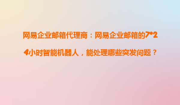 2025-10-31網(wǎng)易企業(yè)郵箱代理商:網(wǎng)易企業(yè)郵箱的7*24小時智能機器人,能處理哪些突發(fā)問題? 引言:智能化服務(wù)成為企業(yè)效率的關(guān)鍵 在數(shù)字化辦公時代,企業(yè)郵箱不僅是溝通工具,更是業(yè)務(wù)高效運轉(zhuǎn)的核...