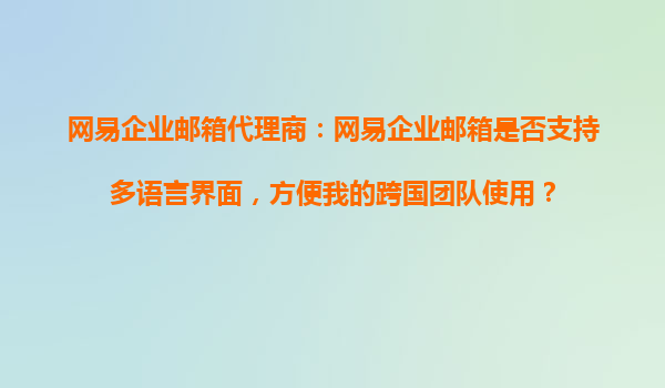 2025-10-30網(wǎng)易企業(yè)郵箱代理商:網(wǎng)易企業(yè)郵箱是否支持多語言界面,方便跨國團(tuán)隊(duì)使用? 引言 隨著全球化的快速發(fā)展,越來越多的企業(yè)開始組建跨國團(tuán)隊(duì),開展國際業(yè)務(wù)。在這...