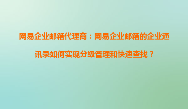 2025-10-30網(wǎng)易企業(yè)郵箱代理商:網(wǎng)易企業(yè)郵箱的企業(yè)通訊錄如何實(shí)現(xiàn)分級管理和快速查找? 一、網(wǎng)易企業(yè)郵箱的企業(yè)級通訊錄核心優(yōu)勢 網(wǎng)易企業(yè)郵箱作為國內(nèi)領(lǐng)先的企業(yè)通信解決方案,其通訊錄功能憑借以下優(yōu)勢滿...