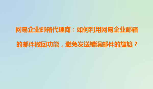 2025-10-29網(wǎng)易企業(yè)郵箱代理商:如何利用網(wǎng)易企業(yè)郵箱的郵件撤回功能,避免發(fā)送錯誤郵件的尷尬? 一、網(wǎng)易企業(yè)郵箱的核心優(yōu)勢 作為國內(nèi)領(lǐng)先的企業(yè)級通信服務(wù)提供商,網(wǎng)易企業(yè)郵箱...