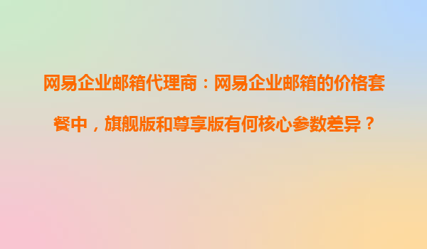 2025-10-30網(wǎng)易企業(yè)郵箱代理商解析:旗艦版與尊享版的核心參數(shù)差異 作為國內(nèi)領(lǐng)先的企業(yè)郵箱服務(wù)提供商,網(wǎng)易企業(yè)郵箱憑借其穩(wěn)定性、安全性和高效的管理功能深受企業(yè)用戶青睞。在眾多套餐中,旗艦版和尊享版是企業(yè)用戶...