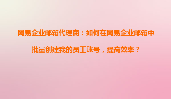 2025-10-29網(wǎng)易企業(yè)郵箱代理商:如何在網(wǎng)易企業(yè)郵箱中批量創(chuàng)建員工賬號,提高效率?一、網(wǎng)易企業(yè)郵箱的優(yōu)勢在數(shù)字化辦公時代,企業(yè)郵箱不僅是溝通工具,更是企業(yè)管理效率的體現(xiàn)。作為國內(nèi)領(lǐng)先的企業(yè)郵箱服務(wù)商...