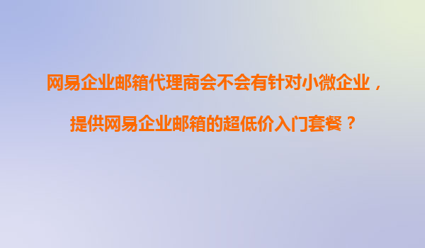 2025-11-19網(wǎng)易企業(yè)郵箱代理商是否會(huì)為小微企業(yè)提供超低價(jià)入門套餐? 1.網(wǎng)易企業(yè)郵箱的市場(chǎng)定位與代理商體系 網(wǎng)易企業(yè)郵箱是國內(nèi)領(lǐng)先的企業(yè)級(jí)郵件服務(wù)提供商,憑借其穩(wěn)定、安全、高效的特點(diǎn),深受廣大企業(yè)...
