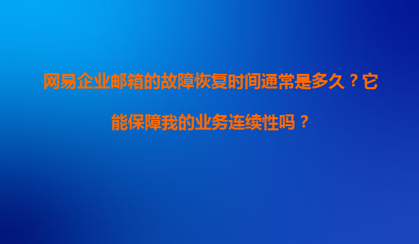 2025-11-19網(wǎng)易企業(yè)郵箱的故障恢復(fù)時(shí)間通常是多久?它能保障我的業(yè)務(wù)連續(xù)性嗎? 一、網(wǎng)易企業(yè)郵箱的技術(shù)優(yōu)勢(shì)與故障恢復(fù)能力 作為國內(nèi)領(lǐng)先的企業(yè)郵箱服務(wù)提供商,網(wǎng)易企業(yè)郵箱憑借其強(qiáng)大的技術(shù)實(shí)力和穩(wěn)定的服務(wù)架...