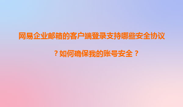 2025-11-19網(wǎng)易企業(yè)郵箱客戶端支持的安全協(xié)議與賬號(hào)安全保障解析 一、網(wǎng)易企業(yè)郵箱客戶端支持的安全協(xié)議 網(wǎng)易企業(yè)郵箱作為國內(nèi)領(lǐng)先的企業(yè)級(jí)郵件服務(wù)提供商,在安全性方面采用了多層次防護(hù)機(jī)制,其客戶端支持以下主流...