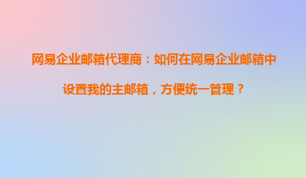2025-10-29網(wǎng)易企業(yè)郵箱代理商:如何在網(wǎng)易企業(yè)郵箱中設(shè)置我的主郵箱,方便統(tǒng)一管理? 為什么要選擇網(wǎng)易企業(yè)郵箱? 在當(dāng)今數(shù)字化辦公環(huán)境中,企業(yè)郵箱已成為企業(yè)溝通和形象展示的重要工具。作為網(wǎng)易企業(yè)郵箱...