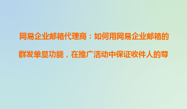 2025-10-26網(wǎng)易企業(yè)郵箱代理商:如何用網(wǎng)易企業(yè)郵箱的群發(fā)單顯功能,在推廣活動中保證收件人的尊重感? 一、推廣活動中的痛點與群發(fā)單顯的價值 在企業(yè)的營銷推廣中,郵件群發(fā)是高效觸達目標客戶的重要手段。然而...