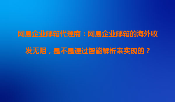 2025-10-25網(wǎng)易企業(yè)郵箱代理商:網(wǎng)易企業(yè)郵箱的海外收發(fā)無阻,是不是通過智能解析來實現(xiàn)的? 在全球化商業(yè)環(huán)境中,企業(yè)郵箱的穩(wěn)定性和海外收發(fā)能力成為企業(yè)選擇郵箱服務的關鍵指標之一。作為國內(nèi)領先的企業(yè)郵箱服務提...