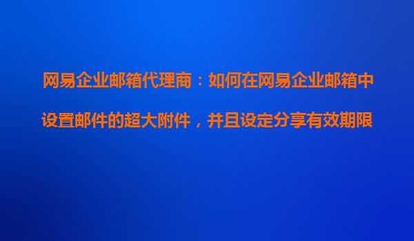 2025-10-26網(wǎng)易企業(yè)郵箱代理商:如何在網(wǎng)易企業(yè)郵箱中設置郵件的超大附件,并且設定分享有效期限? 一、網(wǎng)易企業(yè)郵箱的優(yōu)勢 網(wǎng)易企業(yè)郵箱憑借其強大的功能、穩(wěn)定的性能和優(yōu)質(zhì)的服務,成為眾多企業(yè)的首選。以...
