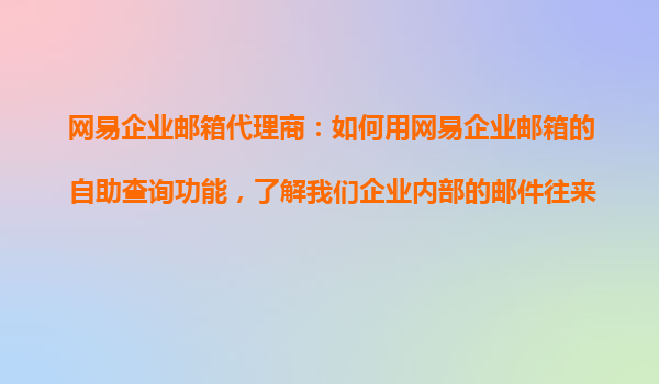 2025-10-26網(wǎng)易企業(yè)郵箱代理商:如何用網(wǎng)易企業(yè)郵箱的自助查詢功能,了解我們企業(yè)內(nèi)部的郵件往來活動? 一、網(wǎng)易企業(yè)郵箱的自助查詢功能簡介 網(wǎng)易企業(yè)郵箱作為國內(nèi)領先的企業(yè)郵箱服務提供商,不僅具備高效穩(wěn)定的...