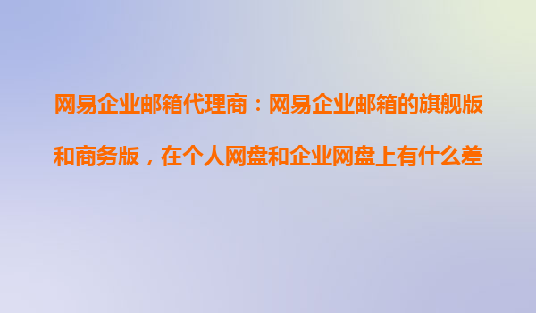 2025-10-25網(wǎng)易企業(yè)郵箱代理商解析:旗艦版與商務(wù)版在個人網(wǎng)盤與企業(yè)網(wǎng)盤的核心差異 一、網(wǎng)易企業(yè)郵箱的核心優(yōu)勢 網(wǎng)易企業(yè)郵箱作為國內(nèi)領(lǐng)先的企業(yè)級郵箱服務(wù),憑借以下優(yōu)勢成為眾多企業(yè)的首選: ...