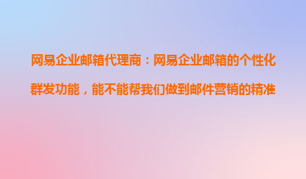 2025-10-25網(wǎng)易企業(yè)郵箱代理商:個性化群發(fā)功能助力郵件營銷精準(zhǔn)推送 在當(dāng)今數(shù)字化營銷時代,郵件營銷依然是企業(yè)與客戶溝通的重要渠道之一。然而,如何實現(xiàn)郵件的精準(zhǔn)推送,提高郵件的打開率和轉(zhuǎn)化率,成為許多企業(yè)關(guān)注的...