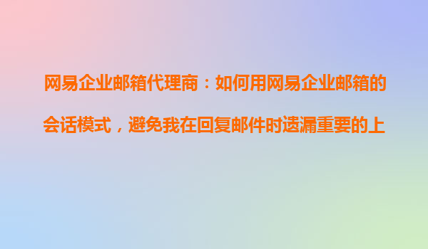 2025-10-25網(wǎng)易企業(yè)郵箱代理商:如何用網(wǎng)易企業(yè)郵箱的會話模式,避免遺漏重要郵件的上下文 一、網(wǎng)易企業(yè)郵箱會話模式的核心優(yōu)勢 網(wǎng)易企業(yè)郵箱的會話模式(也稱為“郵件線程”功能)通過智能歸類同一主題的往...