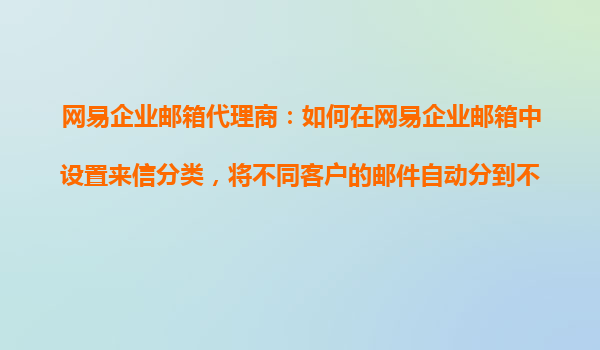4008-020-360 網(wǎng)易企業(yè)郵箱代理商指南:如何設(shè)置來信分類實(shí)現(xiàn)客戶郵件自動歸檔 一、網(wǎng)易企業(yè)郵箱的核心優(yōu)勢 作為國內(nèi)領(lǐng)先的企業(yè)郵箱服務(wù)商,網(wǎng)易企業(yè)郵箱以高穩(wěn)定性、智能管理功能和專業(yè)級安全...
