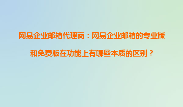 2025-10-23網(wǎng)易企業(yè)郵箱代理商:網(wǎng)易企業(yè)郵箱的專業(yè)版和免費版在功能上有哪些本質的區(qū)別? 一、網(wǎng)易企業(yè)郵箱簡介 網(wǎng)易企業(yè)郵箱是國內領先的企業(yè)郵箱服務商,依托網(wǎng)易22年的郵件運營經(jīng)驗和大數(shù)據(jù)技術,為企業(yè)提供...