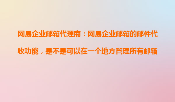 2025-10-23網(wǎng)易企業(yè)郵箱代理商的郵件代收功能:一站式郵箱管理解決方案 在現(xiàn)代企業(yè)中,高效管理多個郵箱賬戶是提升工作效率的重要環(huán)節(jié)。網(wǎng)易企業(yè)郵箱憑借其強大的郵件代收功能,為用戶提供了“一站式”管理所有郵箱的便捷體驗...