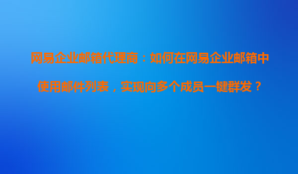 2025-10-23網(wǎng)易企業(yè)郵箱代理商:如何在網(wǎng)易企業(yè)郵箱中使用郵件列表,實(shí)現(xiàn)向多個(gè)成員一鍵群發(fā)? 一、網(wǎng)易企業(yè)郵箱的核心優(yōu)勢 網(wǎng)易企業(yè)郵箱作為國內(nèi)領(lǐng)先的企業(yè)級(jí)郵箱服務(wù)提供商,具備以下核心優(yōu)勢: ...
