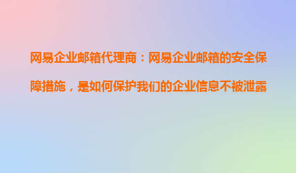 2025-10-23網(wǎng)易企業(yè)郵箱代理商:網(wǎng)易企業(yè)郵箱的安全保障措施,是如何保護(hù)我們的企業(yè)信息不被泄露的? 作者:企業(yè)郵箱專家|發(fā)布日期:2023年10月20日 一、企業(yè)信息安全的挑戰(zhàn)與網(wǎng)易企業(yè)郵箱的應(yīng)對(duì) ...