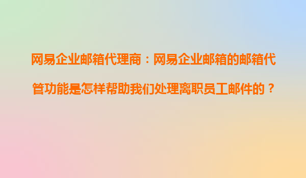 2025-10-20網(wǎng)易企業(yè)郵箱代理商:網(wǎng)易企業(yè)郵箱的郵箱代管功能如何幫助我們處理離職員工郵件? 一、離職員工郵件管理的痛點 在企業(yè)日常運營中,員工流動是不可避免的現(xiàn)象。離職員工的郵箱管理常常成為企業(yè)IT部門的難題...