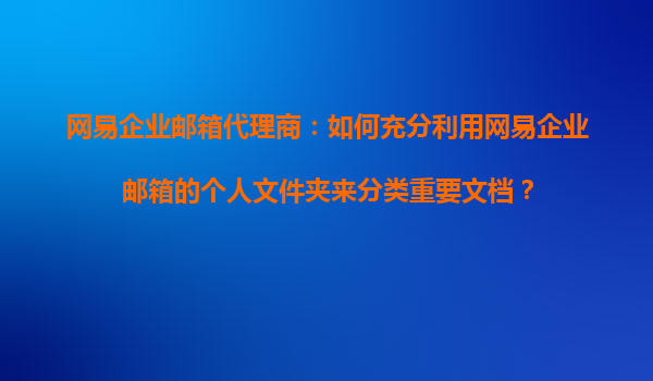 2025-10-20網(wǎng)易企業(yè)郵箱代理商:如何充分利用網(wǎng)易企業(yè)郵箱的個人文件夾來分類重要文檔? 在當今數(shù)字化辦公環(huán)境中,高效管理郵件和文檔是提升企業(yè)運營效率的關(guān)鍵。網(wǎng)易企業(yè)郵箱作為國內(nèi)領(lǐng)先的企業(yè)郵箱服務(wù)提供商,憑借其穩(wěn)定性...