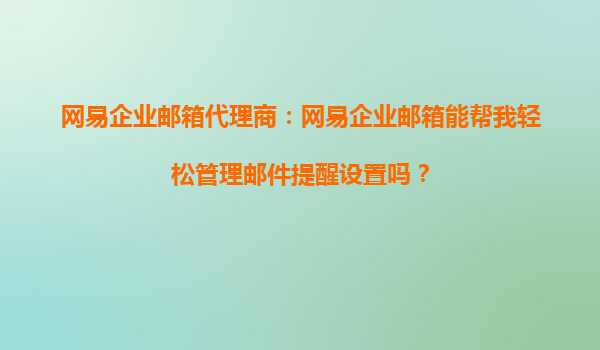 2025-10-15網(wǎng)易企業(yè)郵箱代理商:網(wǎng)易企業(yè)郵箱能幫我輕松管理郵件提醒設(shè)置嗎? 引言 在現(xiàn)代企業(yè)管理中,高效的郵件溝通是企業(yè)運(yùn)營(yíng)的重要環(huán)節(jié)之一。郵件提醒設(shè)置作為郵件系統(tǒng)的核心功能之一,能夠幫助員工及時(shí)處理重要...