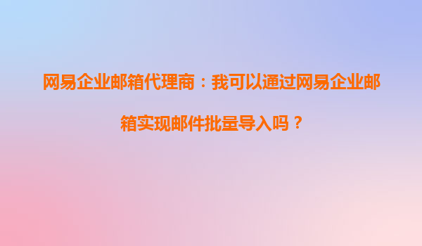 2025-10-15網(wǎng)易企業(yè)郵箱代理商:通過網(wǎng)易企業(yè)郵箱實(shí)現(xiàn)郵件批量導(dǎo)入的全面指南 在現(xiàn)代企業(yè)運(yùn)營(yíng)中,高效、安全的郵件系統(tǒng)是業(yè)務(wù)溝通的核心工具。網(wǎng)易企業(yè)郵箱憑借其穩(wěn)定性和豐富的功能,成為眾多企業(yè)的首選。而作為網(wǎng)...