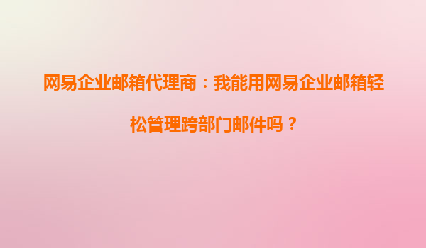 2025-10-14網(wǎng)易企業(yè)郵箱代理商:我能用網(wǎng)易企業(yè)郵箱輕松管理跨部門郵件嗎? 一、網(wǎng)易企業(yè)郵箱的核心優(yōu)勢(shì) 網(wǎng)易企業(yè)郵箱作為國內(nèi)領(lǐng)先的企業(yè)級(jí)郵件服務(wù)提供商,憑借其穩(wěn)定高效的系統(tǒng)架構(gòu)、強(qiáng)大的安全防護(hù)能力以...