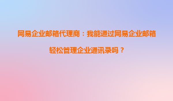 2025-10-15網(wǎng)易企業(yè)郵箱代理商:我能通過網(wǎng)易企業(yè)郵箱輕松管理企業(yè)通訊錄嗎? 一、網(wǎng)易企業(yè)郵箱的企業(yè)通訊錄管理優(yōu)勢(shì) 網(wǎng)易企業(yè)郵箱作為國內(nèi)領(lǐng)先的企業(yè)級(jí)郵箱服務(wù)提供商,...