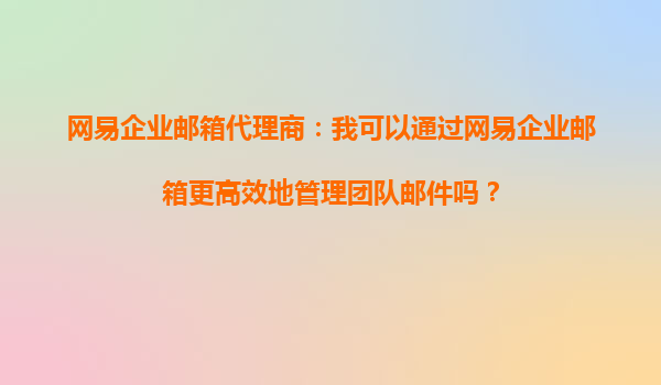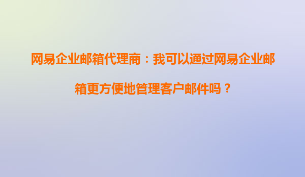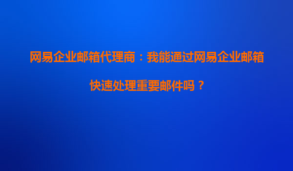 2025-10-06網(wǎng)易企業(yè)郵箱代理商:我可以通過網(wǎng)易企業(yè)郵箱更方便地管理客戶郵件嗎? 在當今數(shù)字化商業(yè)環(huán)境中,高效管理客戶郵件是企業(yè)運營的關鍵環(huán)節(jié)之一。作為網(wǎng)易企業(yè)郵箱的代理商,我們經(jīng)常被客戶問到:“使用網(wǎng)易企...