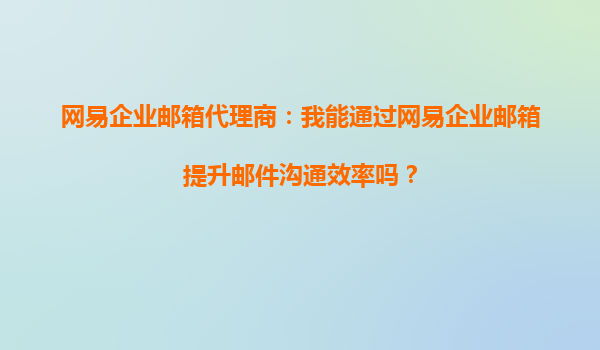 2025-10-05網(wǎng)易企業(yè)郵箱代理商:我能通過(guò)網(wǎng)易企業(yè)郵箱提升郵件溝通效率嗎? 在當(dāng)今快節(jié)奏的商業(yè)環(huán)境中,高效的郵件溝通是企業(yè)運(yùn)營(yíng)的關(guān)鍵。作為網(wǎng)易企業(yè)郵箱的代理商,我們經(jīng)常被客戶問(wèn)到:"網(wǎng)易企業(yè)郵箱真的能提升郵件溝通...