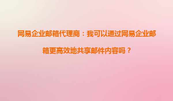 2025-10-04網(wǎng)易企業(yè)郵箱代理商:如何通過網(wǎng)易企業(yè)郵箱更高效地共享郵件內(nèi)容? 引言 在現(xiàn)代企業(yè)中,高效的郵件溝通是提升團(tuán)隊(duì)協(xié)作效率的關(guān)鍵。作為網(wǎng)易企業(yè)郵箱的代理商,...