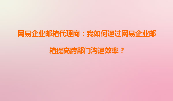 2025-10-04網(wǎng)易企業(yè)郵箱代理商:我如何通過網(wǎng)易企業(yè)郵箱提高跨部門溝通效率? 一、網(wǎng)易企業(yè)郵箱的核心優(yōu)勢(shì) 網(wǎng)易企業(yè)郵箱作為國(guó)內(nèi)領(lǐng)先的企業(yè)級(jí)郵件服務(wù),具備以下核心優(yōu)勢(shì): 高安全性:采用SSL加密傳輸、反垃...