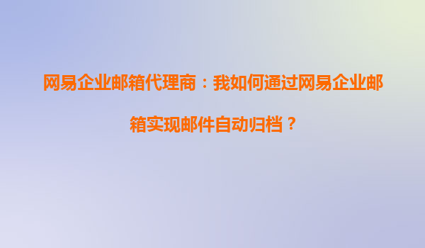 2025-10-02網(wǎng)易企業(yè)業(yè)郵箱代理商:如何通過(guò)網(wǎng)易企業(yè)郵箱實(shí)現(xiàn)郵件自動(dòng)歸檔? 在在線辦公日益普及的今天,企業(yè)郵箱不僅是溝通工具,amba更是企業(yè)數(shù)據(jù)管理的重要環(huán)節(jié)。郵件自動(dòng)歸檔功能可以幫助企業(yè)高效管理、安全存儲(chǔ)郵件數(shù)...
