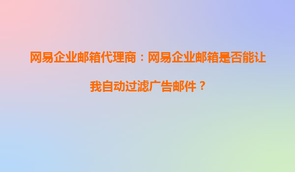 2025-09-30網易企業(yè)郵箱代理商:網易企業(yè)郵箱是否能讓我自動過濾廣告郵件? 在當今數字化辦公環(huán)境中,企業(yè)郵箱不僅是溝通的重要工具,更是企業(yè)形象和專業(yè)度的體現。然而,隨著電子郵件的普及,廣告郵件、垃圾郵...