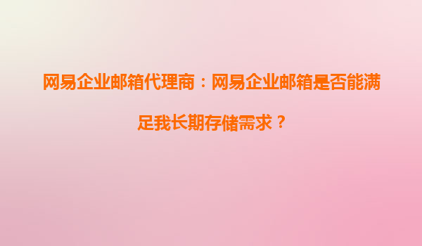 2025-09-30網易企業(yè)郵箱代理商:網易企業(yè)郵箱是否能滿足我長期存儲需求? 在當今數字化辦公環(huán)境中,企業(yè)郵箱不僅是溝通工具,更是企業(yè)數據資產的重要載體。許多企業(yè)在選擇郵箱服務時,往往會關注一個核心問題:能否滿足長...