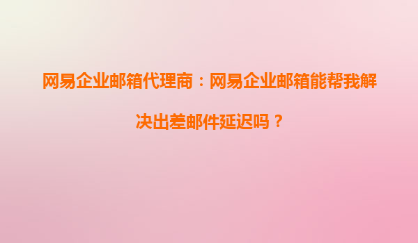 2025-09-30網易企業(yè)郵箱代理商:網易企業(yè)郵箱能幫我解決出差郵件延遲嗎? 在現代商務環(huán)境中,郵件溝通是企業(yè)運營的核心環(huán)節(jié)之一。然而,許多企業(yè)在員工出差時常常遇到郵件延遲的問題,這不僅影響了工作效率,還...