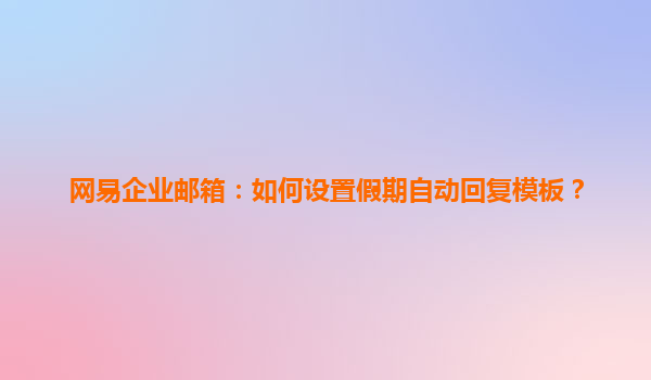 如何設(shè)置假期自動(dòng)回復(fù)模板:網(wǎng)易企業(yè)郵箱的優(yōu)勢(shì)與實(shí)用功能