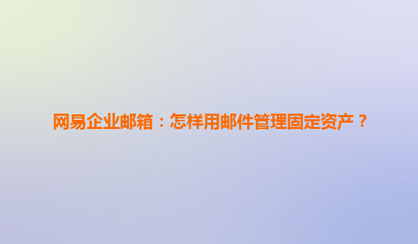 如何使用網(wǎng)易企業(yè)郵箱管理固定資產(chǎn)