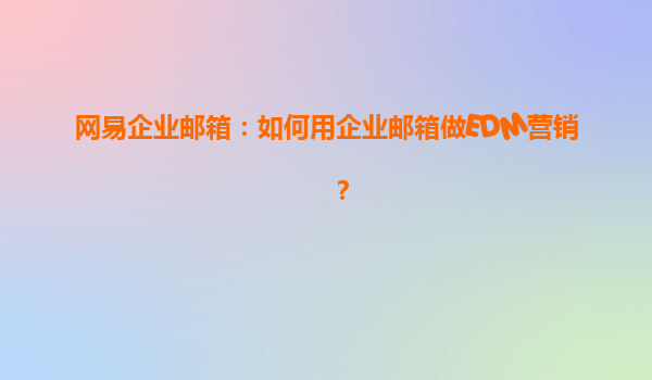 如何用網(wǎng)易企業(yè)郵箱做EDM營(yíng)銷?