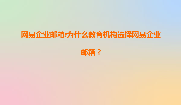 網(wǎng)易企業(yè)郵箱:教育機構信息化建設的智慧選擇