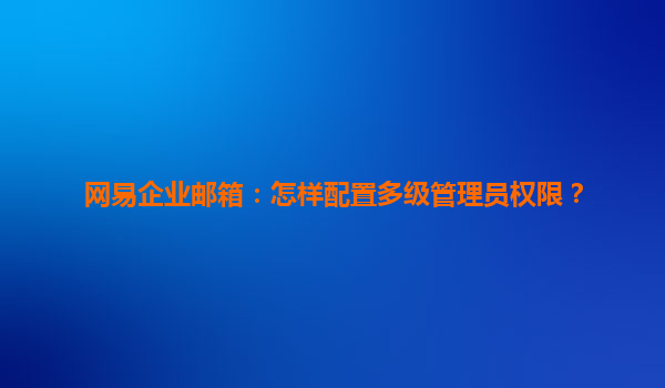網(wǎng)易企業(yè)郵箱多級管理員權(quán)限配置全攻略:釋放企業(yè)管理新效能