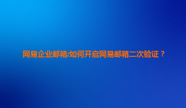 網(wǎng)易企業(yè)郵箱:如何開(kāi)啟二次驗(yàn)證提升賬戶安全