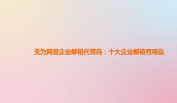 無為網(wǎng)易企業(yè)郵箱代理商:十大企業(yè)郵箱推薦