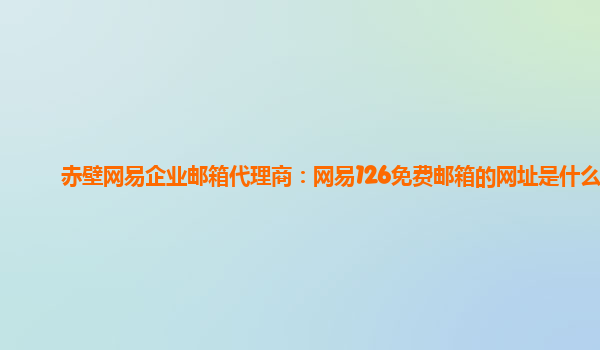 赤壁網易企業郵箱代理商:網易126免費郵箱的網址是什么