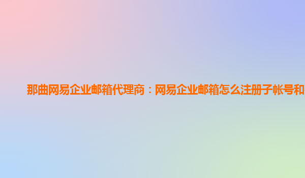 那曲網易企業郵箱代理商:網易企業郵箱怎么注冊子賬號和密碼