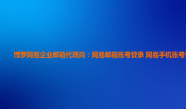 博羅網易企業郵箱代理商:網易郵箱賬號登錄 網易手機賬號登錄