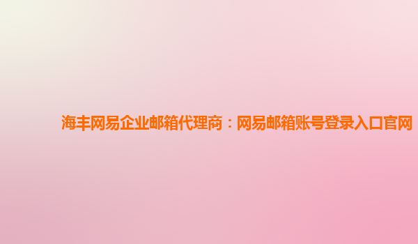 海豐網易企業郵箱代理商:網易郵箱賬號登錄入口官網
